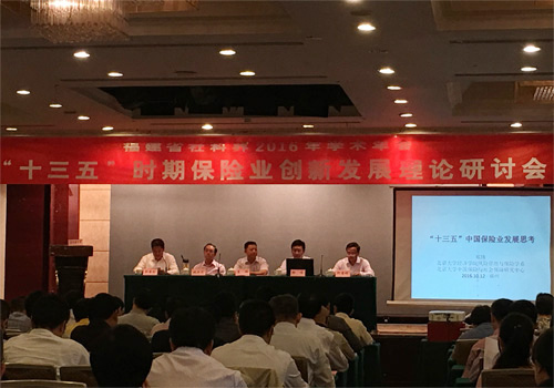 在福州期间,郑伟教授应邀出席福建省社科界2016年学术年会暨“十三五”时期保险业创新发展理论研讨会。郑伟教授在会上发表“‘十三五’中国保险业发展思考”的主题演讲,演讲内容涉及保险业“十三五”规划纲要、保险供给侧改革、人口老龄化与商业养老保险、保险创新发展的宁波经验等话题。演讲之后,郑伟教授还针对大家提出的问题做了进一步的探讨,与参会人员进行了良好的互动。来自福建保监局、省社科联、省保险学会以及福建省相关高等院校、科研机构、保险机构的负责人和代表约200余人参加了会议。