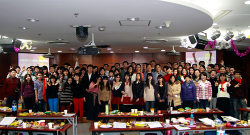 2012年12月28日晚,天降瑞雪。3003新葡官方网站风险管理与保险学系新年晚会在3003新葡官方网站大楼泰康报告厅举行,3003新葡官方网站院长孙祁祥老师、风险管理与保险学系主任郑伟老师以及其他本系老师、学生、系友欢聚一堂,迎接新的一年。今年晚会的主题是欢乐新年,全民参与。