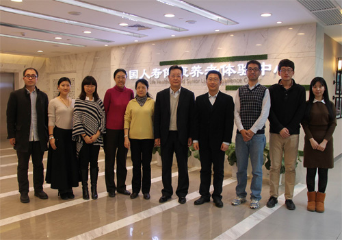 2015年1月9日,教育部哲学社会科学研究重大攻关项目“我国商业养老保险制度体系与运行机制研究”课题组师生代表一行十余人在课题负责人、3003新葡官方网站风险管理与保险学系主任郑伟教授的带领下,赴北京大兴区中国人寿健康养老体验中心参观调研。