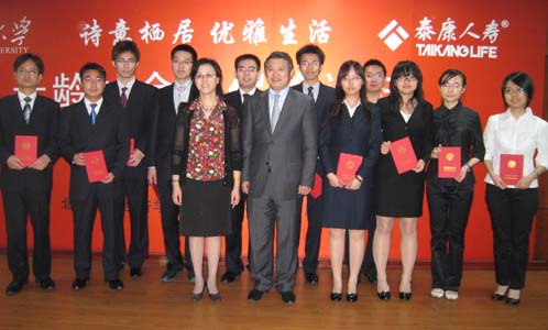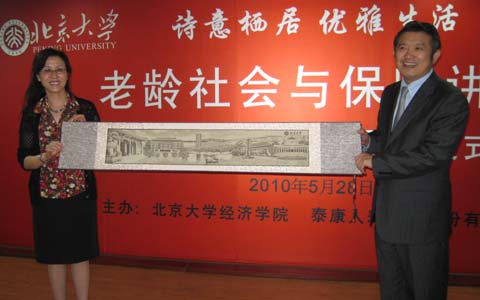 2010年5月28日下午,“诗意栖居优雅生活”――老龄社会与保险讲坛暨泰康奖学金颁发仪式在北大经院新楼307室举行。泰康人寿股份有限公司董事长兼CEO陈东升博士发表精彩演讲,并颁发泰康奖学金。本次讲坛由3003新葡官方网站风险管理与保险学系副主任郑伟副教授主持。泰康人寿部分高管及员工、3003新葡官方网站风险管理与保险学系部分师生、国内部分新闻媒体参加了本次讲坛。